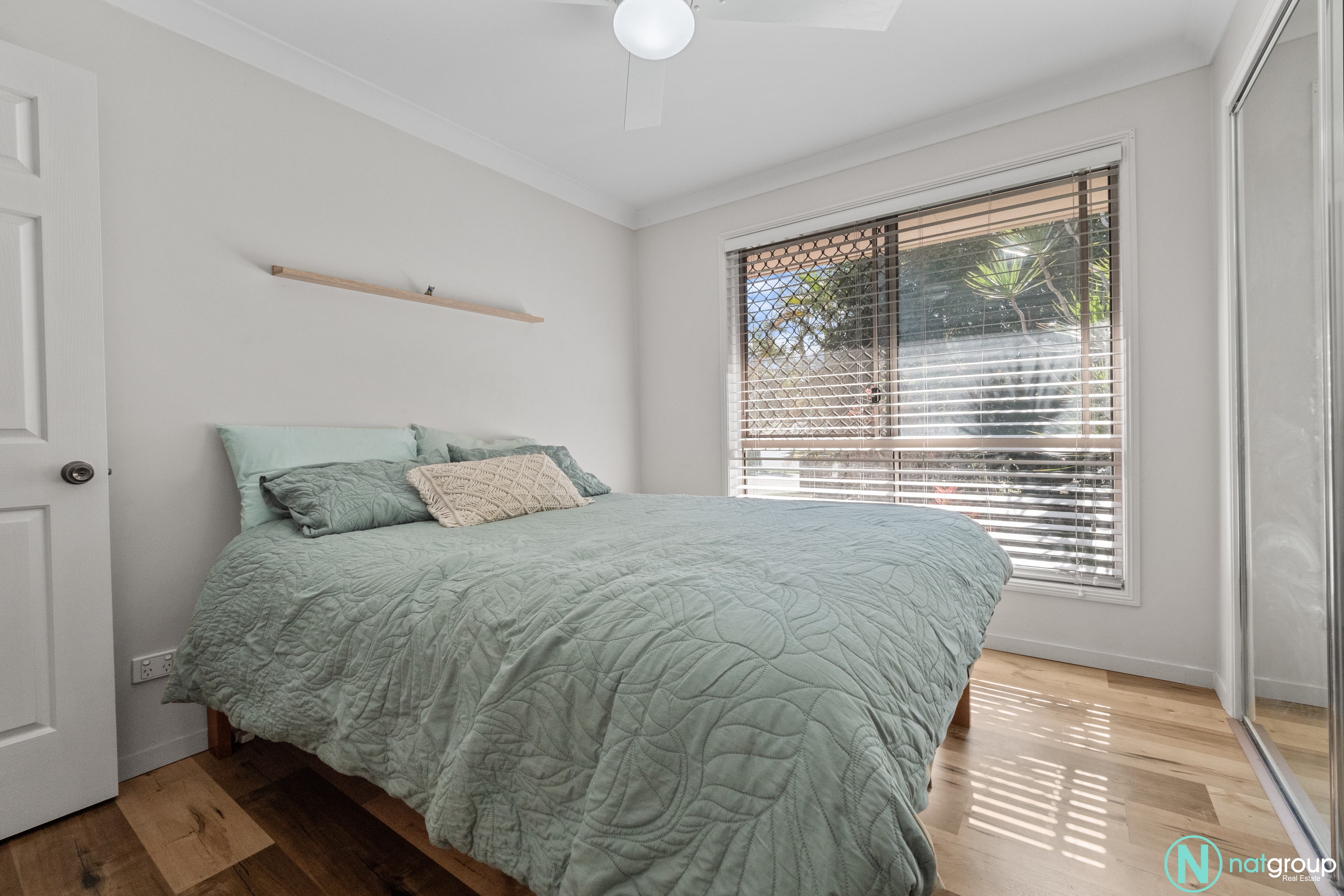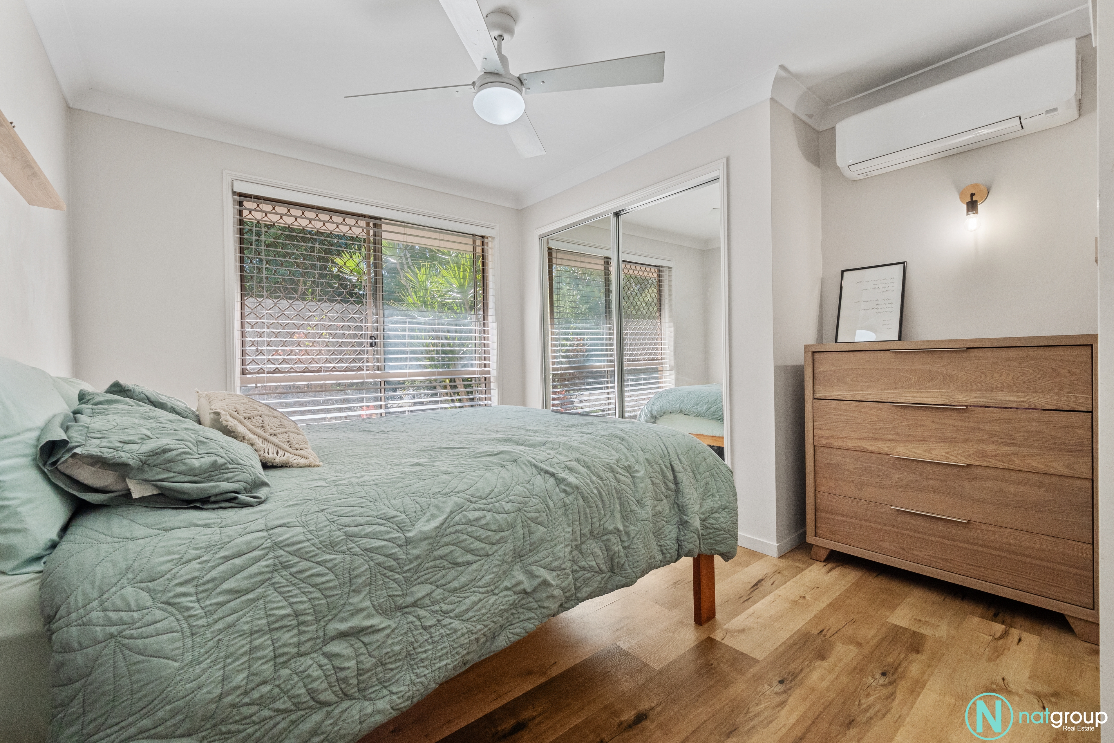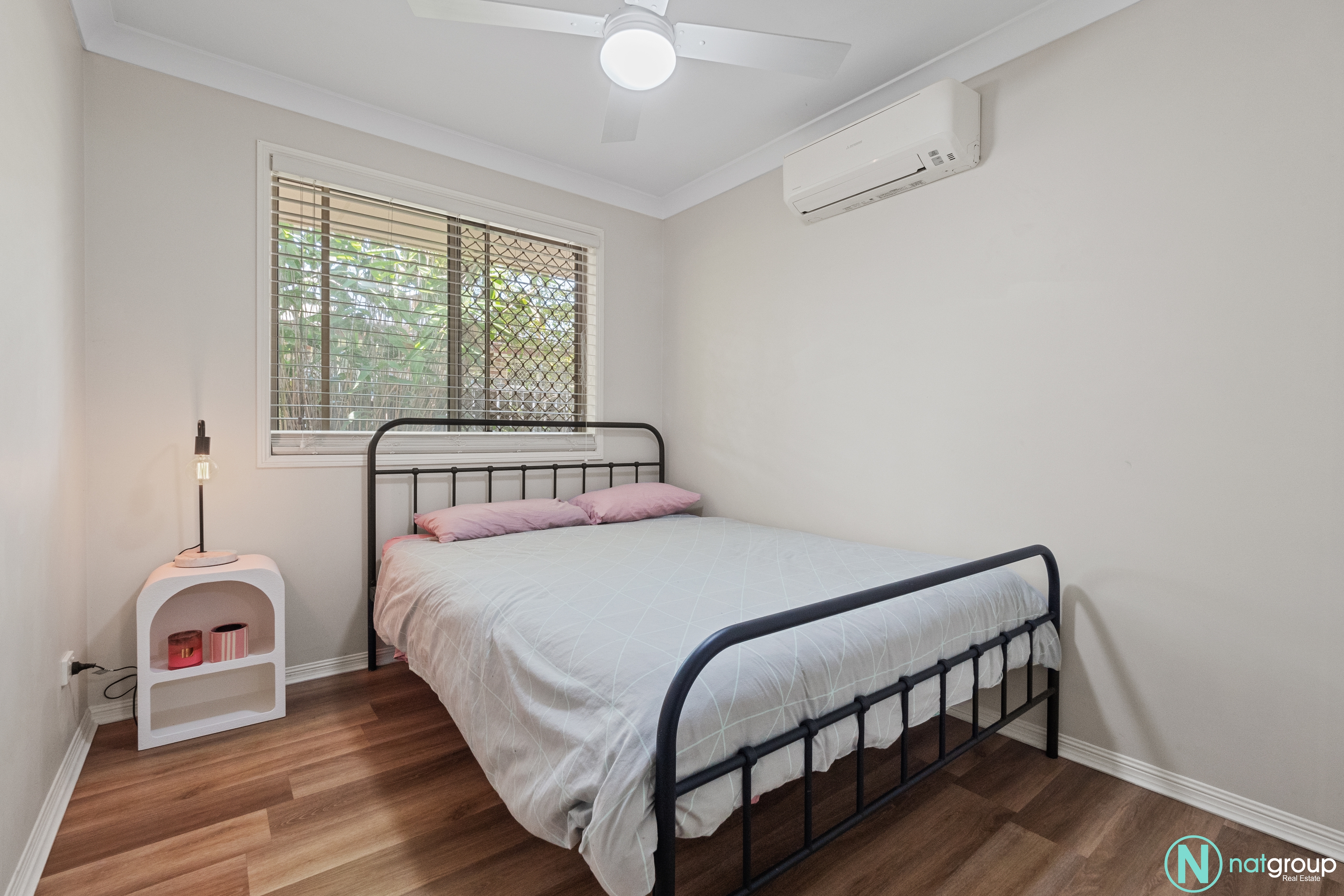 The master bedroom is a true retreat, featuring a private ensuite, a built-in robe, a ceiling fan, and air conditioning to ensure year-round comfort. The other two bedrooms are equally inviting, each equipped with ceiling fans for those warm summer nights.