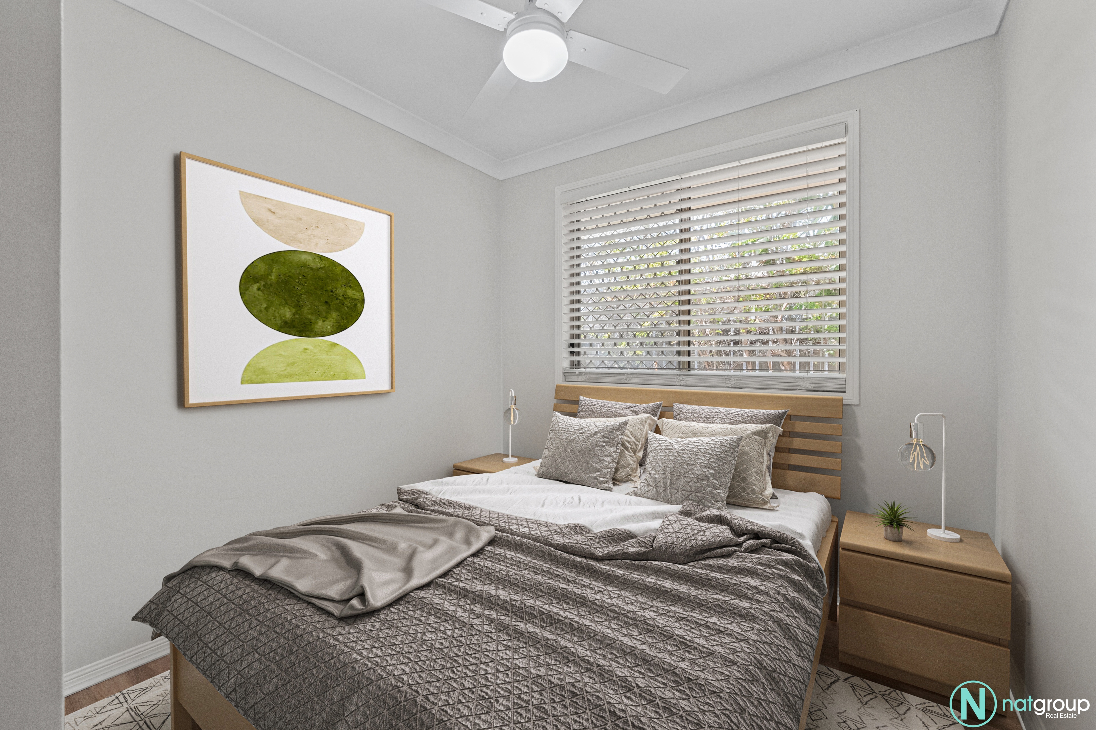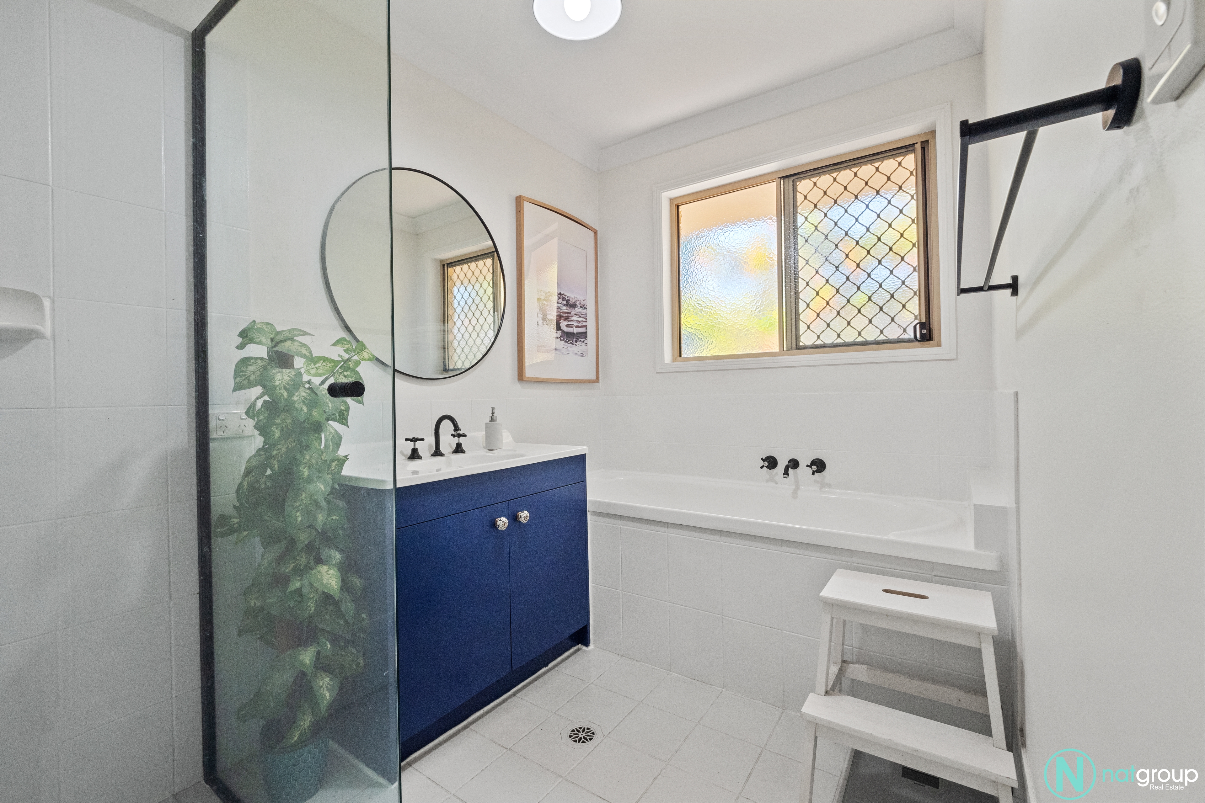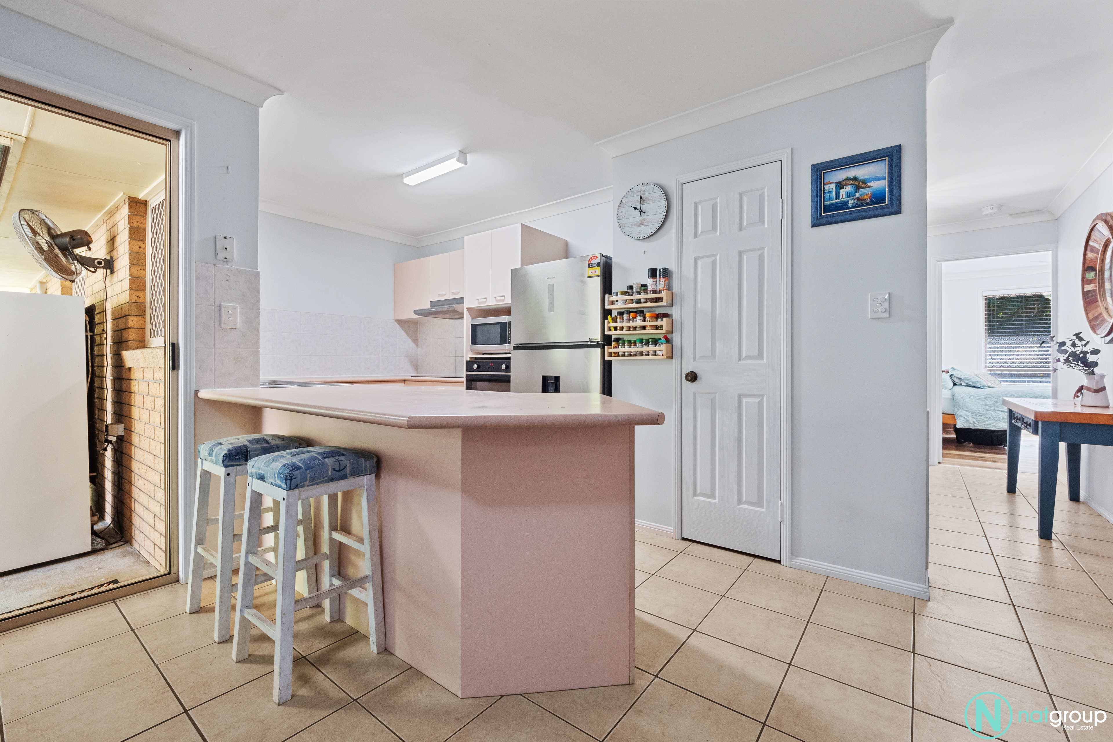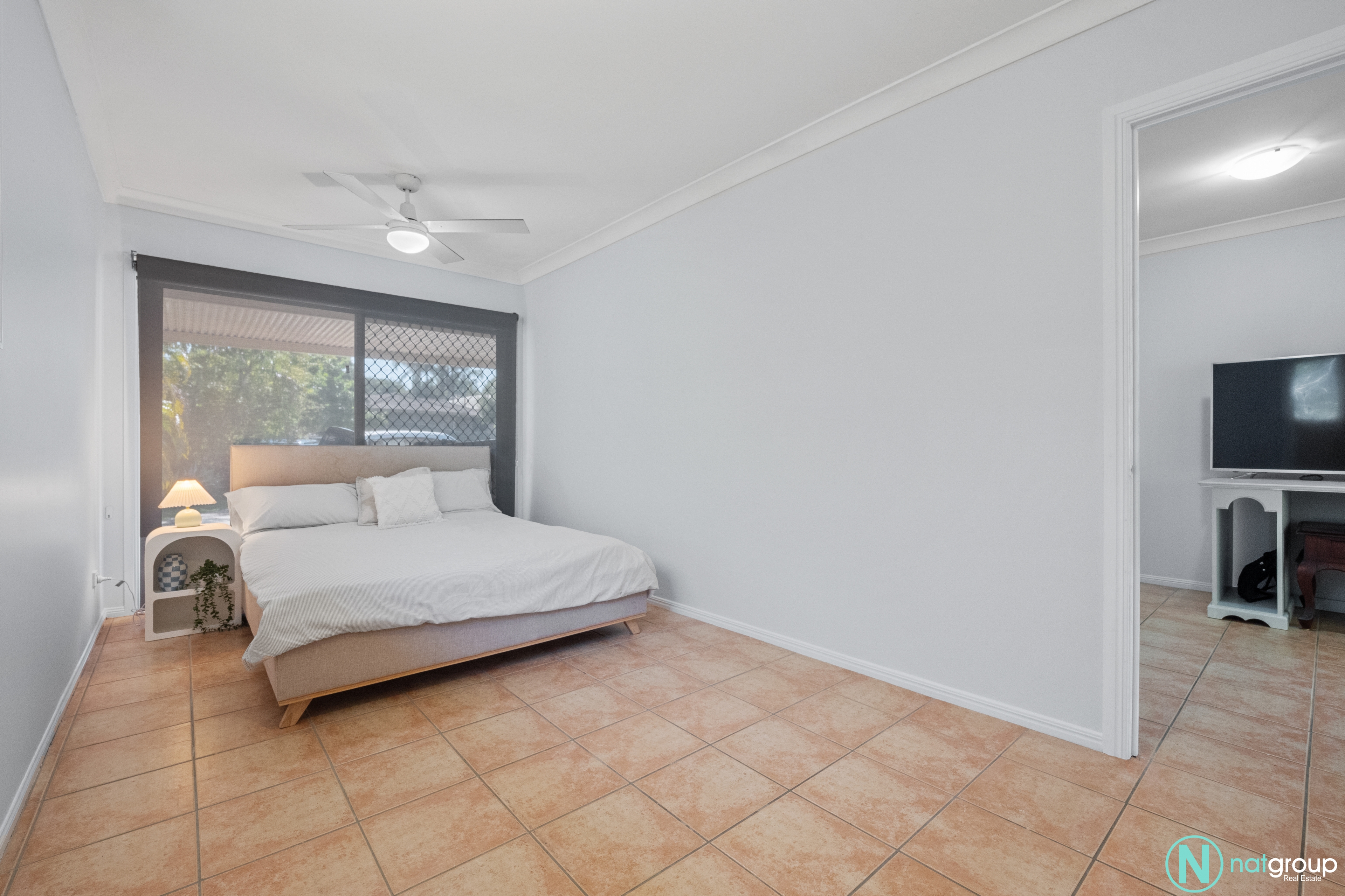 The master bedroom is a true retreat, featuring a private ensuite, a built-in robe, a ceiling fan, and air conditioning to ensure year-round comfort. The other two bedrooms are equally inviting, each equipped with ceiling fans for those warm summer nights.